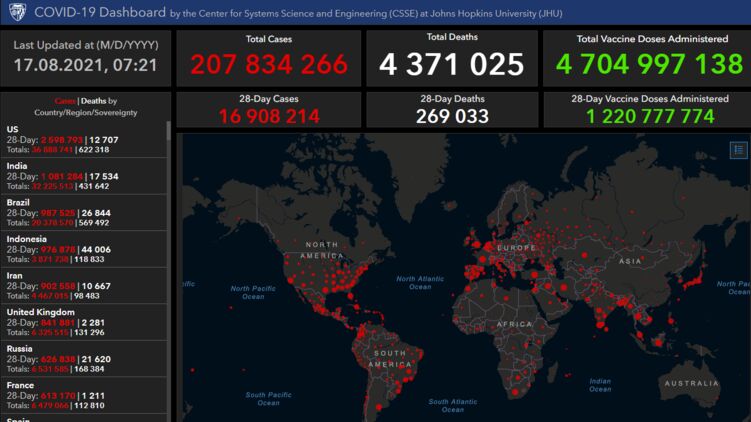 В мире же, по последним данным университета Джона Хопкинса, на утро 17 августа отмечено уже 207 834 266 зараженных с момента начала пандемии. Тройка мировых "лидеров" (если это определение в данном контексте уместно) по числу заболевших выглядит так - Соединенные Штаты Америки, Индия и Бразилия. Причем, например, власти США разрабатывают жесткие антиковидные ограничения.