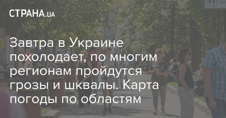 Завтра в Украине похолодает, по многим регионам пройдутся грозы и шквалы. Карта погоды по областям