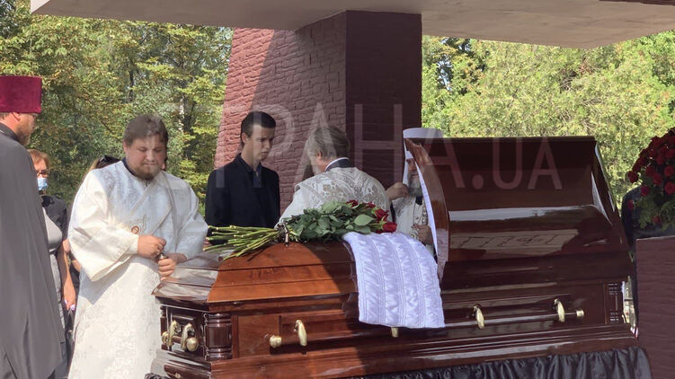 Около гроба стоит нардеп Вадим Новинский. Он сослужил в облачении протодьякона