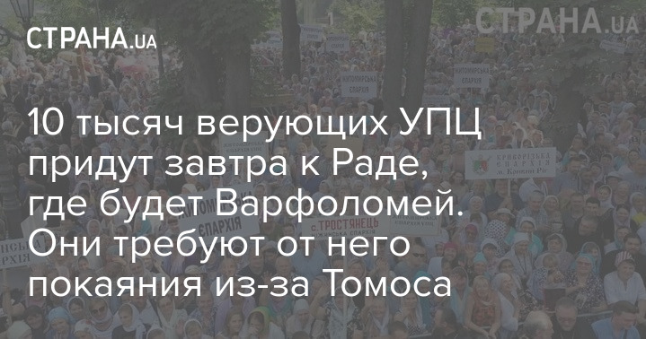 10 тысяч верующих УПЦ придут завтра к Раде, где будет Варфоломей. Они требуют от него покаяния из-за Томоса