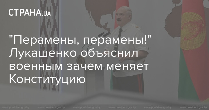 Также президент рассказал некоторым военнослужащим, которые "не понимают, зачем президенту референдум и обновленная конституция". По его словам, он не может этого не сделать, так как обещал и потому, что поддерживает перемены, которых просили протестующие: "Вы же помните их лозунг: "Перамены, перамены, перамены". И мы сказали: да, нужны перемены", - сказал Лукашенко.