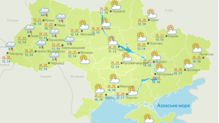 В Украине 23 августа ожидается теплая летняя погода. Карта прогноза по областям