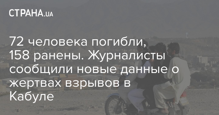 К полуночи пятницы, 27 августа число жертв взрывов в аэропорту столицы Афганистана - Кабула достигло 72 человек. Еще 158 числятся пострадавшими.