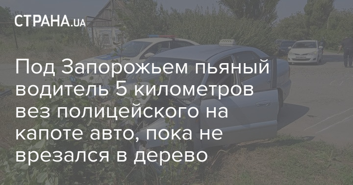 Под Запорожьем пьяный водитель 5 километров вез полицейского на капоте авто, пока не врезался в дерево