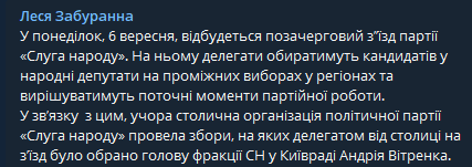 Внеочередной съезд партии "Слуга народа" пройдет 6 сентября - нардеп