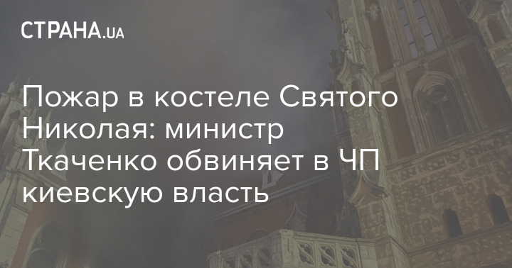 Министр культуры и информационной политики Александр Ткаченко заявил, что обвиняет киевскую власть в бездействии, что и привело к пожару и уничтожению уникального органа в католическом костеле Святого Николая. Об этом он написал у себя в Telegram-канале.