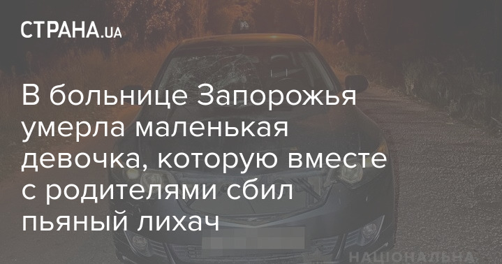 В Запорожье на острове Хортица пьяный мужчина сбил супружескую пару с ребенком. Девочка получила тяжелейшие травмы и скончалась в Запорожской областной клинической детской больнице. Врачи сражались за ее жизнь восемь дней, но к сожалению, спасти ребенка не удалось.