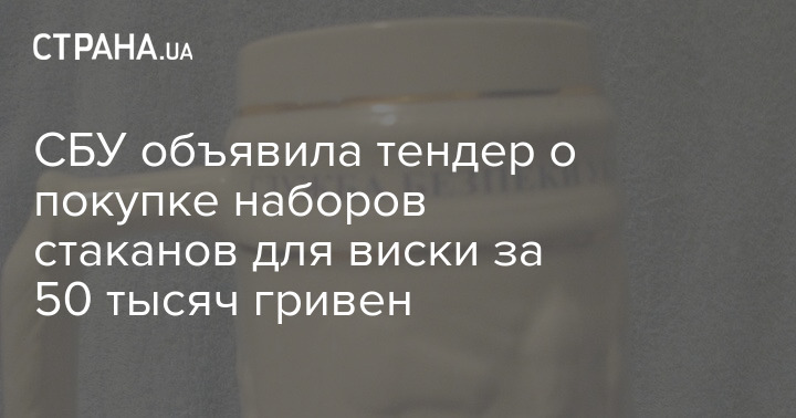 Служба безопасности Украины намерена купить через систему закупок ProZorro десять подарочных наборов стаканов для виски, на которых будет изображено здание ведомства.