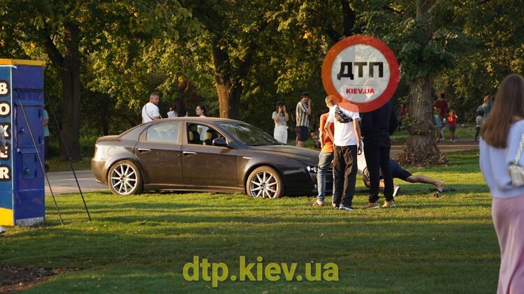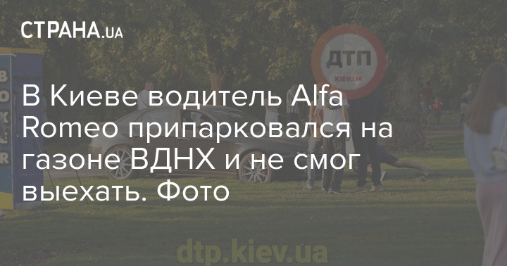 В Киеве водитель Alfa Romeo припарковался на газоне ВДНХ и не смог выехать. Фото