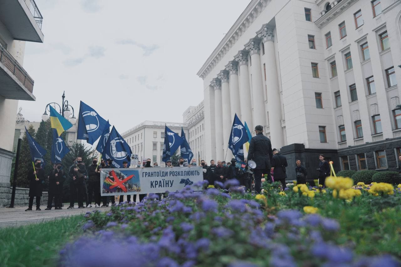 11:16 Тем временем под Офисом президента собрались националисты из организации "Традиция и порядок". Они требуют от Зеленского "поддерживать семью, а не грантоедов".