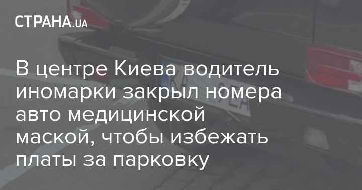 В Киеве водитель иномарки пытался избежать платы за парковку оригинальным способом. Для этого он прикрыл номера своей машины медицинской маской.
