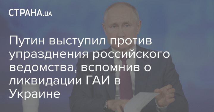 Президент РФ Владимир Путин выступил против упразднения Федеральной службы по надзору в сфере образования и науки (Рособрнадзор). При этом он вспомнил ликвидацию ГАИ в Украине, не называя прямо страну.