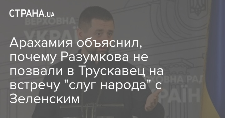 При этом председателю Верховной Рады так и не выслали приглашения на встречу. Арахамия объясняет это тем, что в Трускавце пройдет собрание фракции, членом которой Разумков не является.