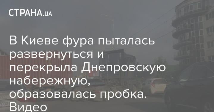 В Киеве фура пыталась развернуться и перекрыла Днепровскую набережную, образовалась пробка. Видео