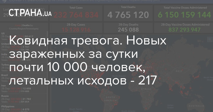 Ковидная тревога. Новых зараженных за сутки почти 10 000 человек, летальных исходов - 217