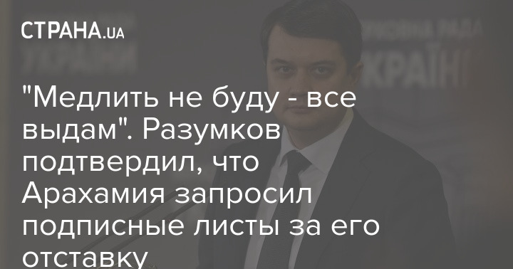 Председатель Верховной Рады Дмитрий Разумков подтвердил, что глава фракции "Слуга народа" Давил Арахамия попросил выдать ему подписные листы за отставку спикера.