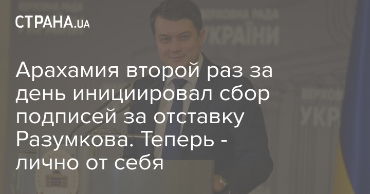 После того, как народные депутаты от "Слуги народа" выразили свое возмущение тем, что сбор голосов за отставку спикера Дмитрия Разумкова глава фракции Давид Арахамия иниицровал от имени фракции, хотя она такого решения и не принимала, глава Арахамия инициировал обращение по поводу подписных листов об отставке Разумкова лично от себя.