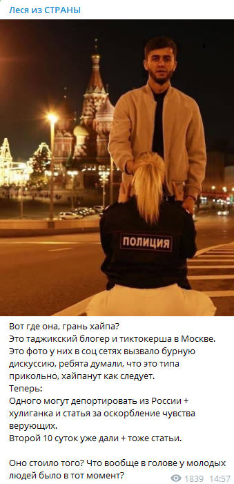 Это таджикский блогер и тиктокерша в Москве. Это фото у них в соцсетях вызвало бурную дискуссию, ребята думали, что это типа прикольно, хайпанут как следует.