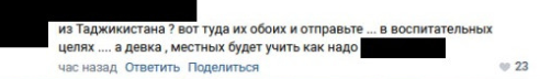 "В России расслабились, почувствовали свободу", "Ради лайков на всё, как куры ради корма", "Совсем страх потеряли", "Скоро слово блогер станет ругательным, и это будет правильно", "из Таджикистана? вот туда их обоих и отправьте... в воспитательных целях, а девка местных будет учить, как надо" - писали в соцсетях.