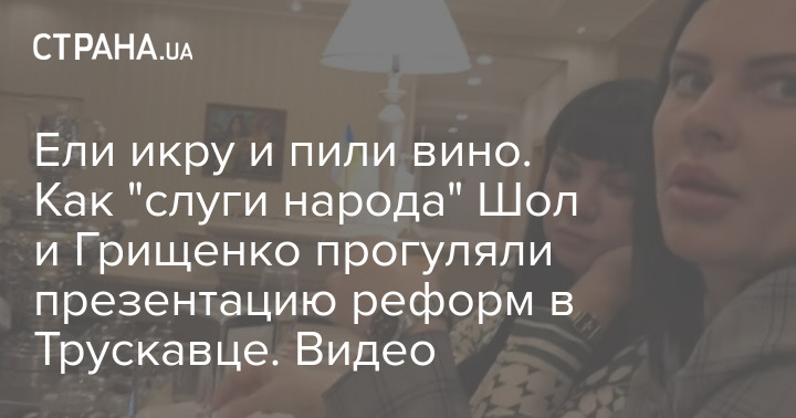 Народные депутаты от партии "Слуга народа" Татьяна Грищенко и Маргарита Шол во время заседания партии в Трускавце провели время в баре. Тут они ели бутерброды с икрой и запивали их вином. В это время согласно расписанию парламентарии и министры презентовали План реформ на 2021-2023 годы.
