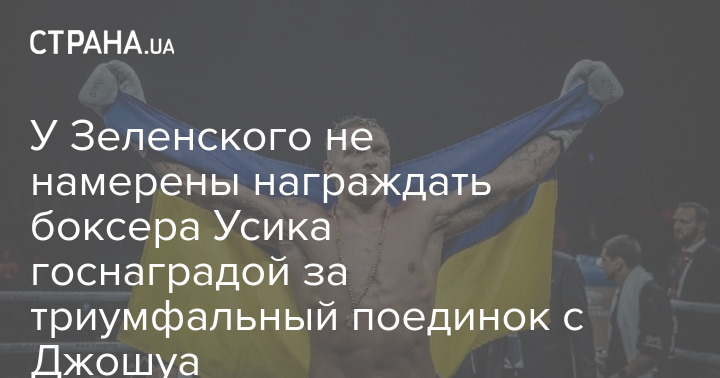 Офис президента Украины не планирует награждать обладателя чемпионских поясов по версиям WBA, WBO, IBF и IBO украинца Александра Усика, который триумфально победил в бою с британцем Энтони Джошуа, государственной наградой.