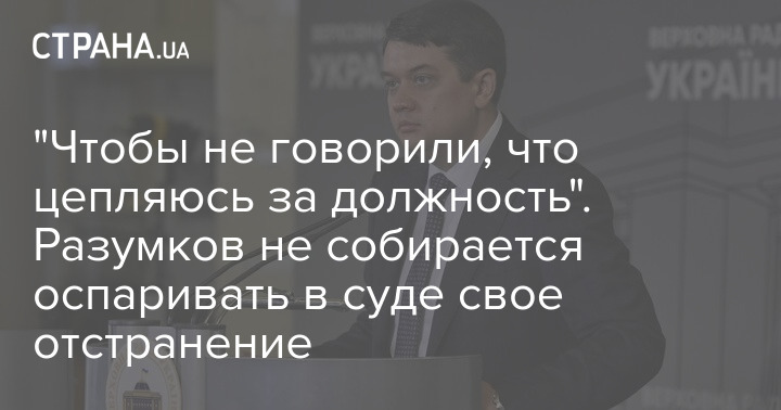 Подавать в суд на незаконное решение я не буду, чтобы потом никто не ходил и не рассказывал, что я держусь за должность. Поверьте, если бы я хотел, то я бы удержался на должности спикера парламента, я знаю как это сделать, но не буду", - заявил Разумков.