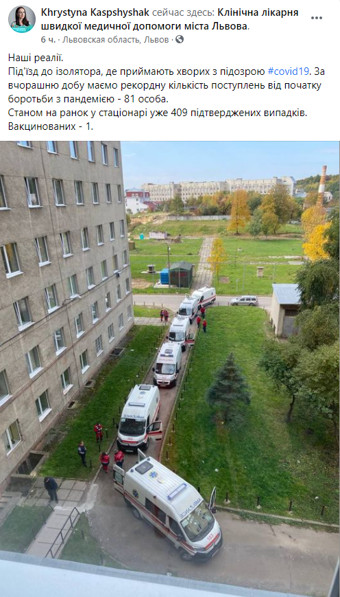 Похожая ситуация в одной из больниц Львова, где зафиксировали рекордное количество пациентов с коронавирусом, а из машин скорой помощи образовалась очередь.