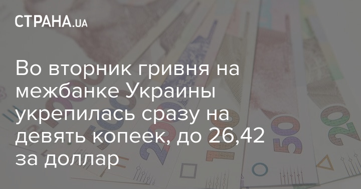 Согласно данным Нацбанка Украины, справочный курс гривни на межбанке во вторник укрепился до 26,44 грн/$1 с 26,59 грн/$1 в понедельник.