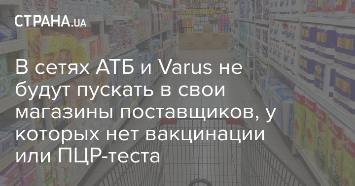 В двух крупных украинских супермаркетах "АТБ" и "Varus" для сотрудников поставщиков изменятся правила посещения магазинов. В частности, без прививки от коронавируса или отрицательного ПЦР-теста таких работников не будут пускать в магазины.