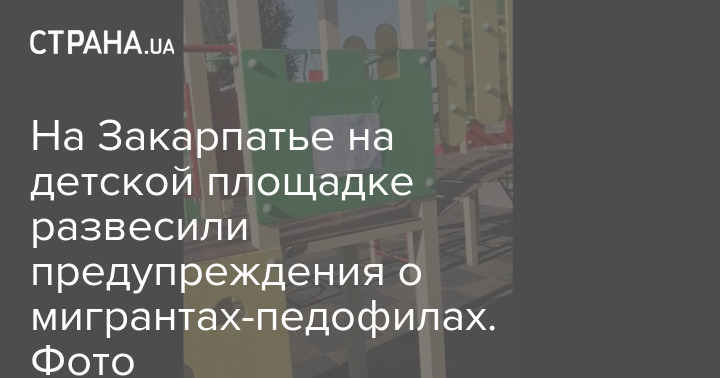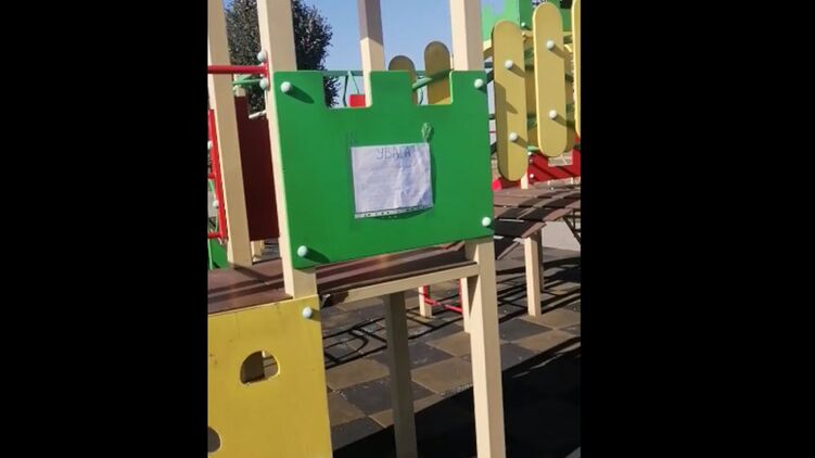 На Закарпатье детскую площадку украсили объявлением о мигрантах-педофилах. Фото: Скриншот из видео