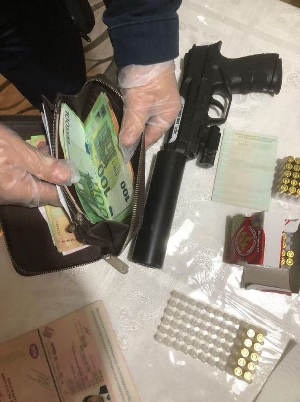 У иностранцев изъяли три пистолета, один из них был с глушителем и лазерным прицелом, а также патроны.