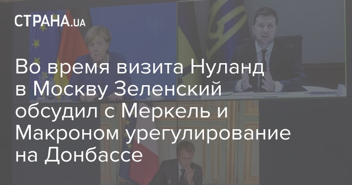 Во время визита Нуланд в Москву Зеленский обсудил с Меркель и Макроном урегулирование на Донбассе