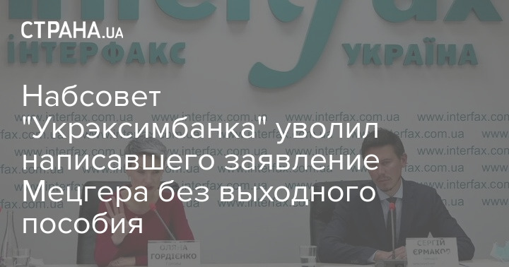 "11 октября, во время проведения внеочередного заседания номинационного комитета наблюдательного совета АО "Укрэксимбанк" по поводу возможных мероприятий (с учетом проведенной работы Комиссии по этике и Состояния служебной проверки) было получено заявление от Мецгера Евгения Владимировича от 11 октября  о расторжении срочного трудового договора по собственной инициативе. Номинационный комитет, соответственно, предоставил немедленную рекомендацию набсовету прекратить его полномочия на основании ч. 1 ст. 39 Кодекса законов о труде Украины и соответствующего пункта трудового контракта с Мецгером", - сказано в записи.