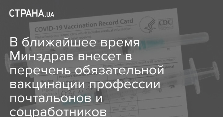 В Украине планируют расширять список профессий, представители которых будут подлежать обязательной вакцинации от COVID-19. В частности, в ближайшее время он может быть дополнен социальными работниками и почтальонами.