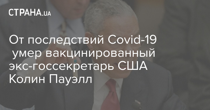 "Генерал Колин Л. Пауэлл, бывший госсекретарь США и председатель Объединенного комитета начальников штабов, скончался сегодня утром из-за осложнений, связанных с Covid-19", - сообщила семья Пауэлла.