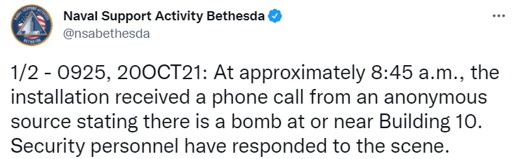 1 октября военная база NSABethesda отметила свое 10-летие. Фото: WRBethesda/twitter