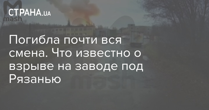 Взрыв на заводе под Рязанью унес жизни 16 человек. Фото: Telegram-канал Mash