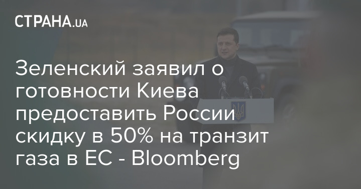 Зеленский заявил о готовности Киева предоставить России скидку в 50% на транзит газа в ЕС - Bloomberg