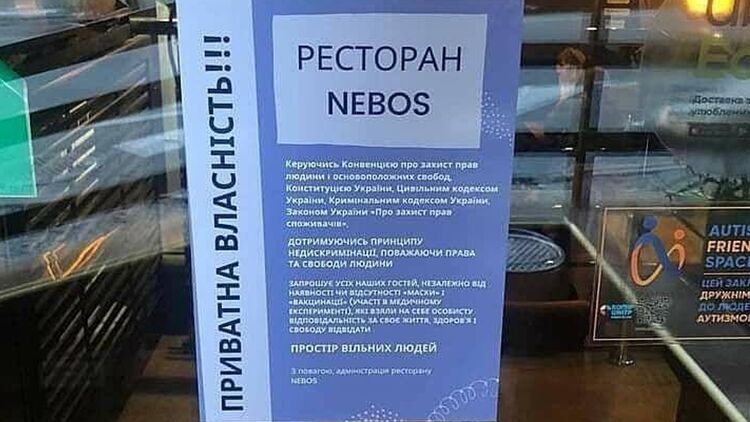 Также соответствующее объявление размещено на двери при входе в кафе. Nebos называет себя "местом свободных людей".  "Нам не важно, есть ли у вас маска, вакцинировались ли вы - мы всегда открыты для людей, которые берут ответственность за своё здоровье. Ведь именно это право есть у каждого свободного человека", - написали в  аккаунте Nebos.  Под этим постом мнения пользователей разделились. Одни поддержали позицию кафе, другие жестко критикуют заведение за пропаганду антивакцинаторства.  Примечательно, что одобрительный комментарий со смайлом в виде сердечка посту Nebos поставила украинская певица MARUV.