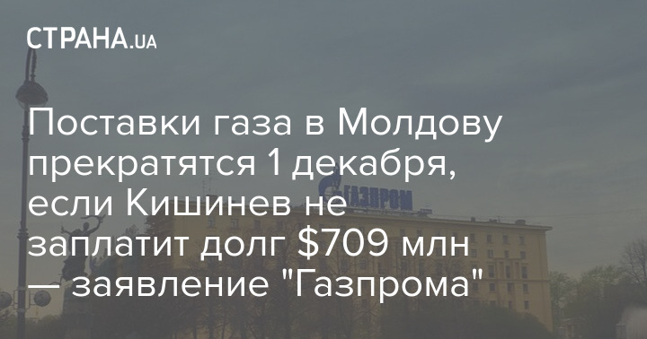 Поставки газа в Молдову прекратятся 1 декабря, если Кишинев не заплатит долг $709 млн — заявление "Газпрома"