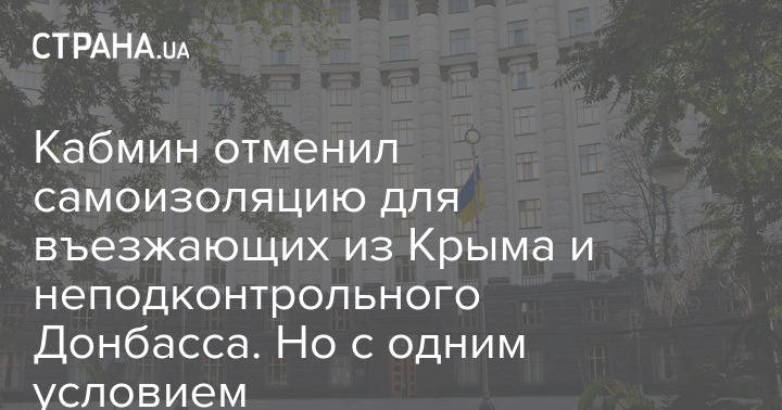 Кабмин отменил самоизоляцию для въезжающих из Крыма и неподконтрольного Донбасса. Но с одним условием