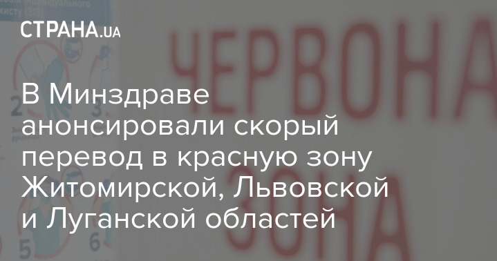 Вслед за новостью о скором переводе в красную зону Черниговской области появилась информация о намерении властей отнести к ней еще три региона. Как заявил глава Минздрава Виктор Ляшко, его ведомство прогнозирует введение красного уровня эпидемической опасности в Житомирской, Львовской и Луганской областях.