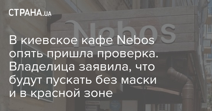 Сегодня, 29 октября, в киевское кафе Nebos, которое открыто отказывается соблюдать правила карантина, снова пришли с проверкой. Проверка проходит в заведении в данный момент, сообщила собственница кафе Ирина Богданович.