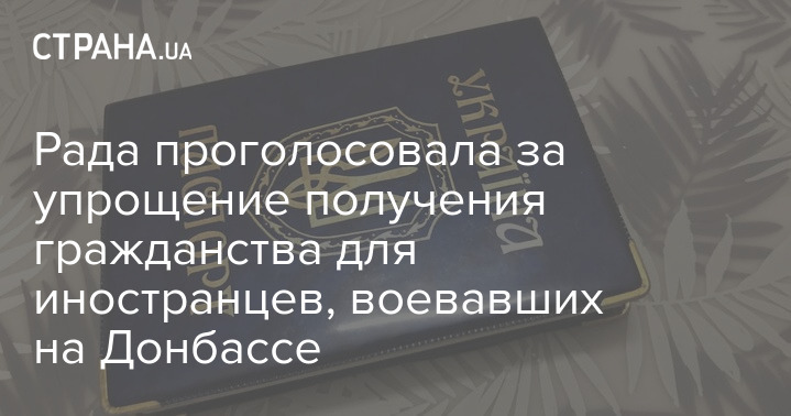Верховная Рада Украины на заседании 2 ноября проголосовала в первом чтении за законопроект №5630 "О гражданстве Украины". Он предполагает упрощенное приобретение украинского гражданства иностранцами и лицами без гражданства, участвовавшими в конфликте на Донбассе на стороне Киева.