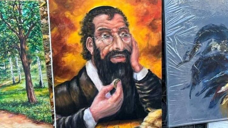 "Видела на рынке в Киеве. Она висит среди картин с цветами, животными и красивыми видами. Эта картина не безобидная. Это не юмор. Это антисемитизм. Он изображает евреев такими, какими они не являются. Ему нет места ни в каком виде, нигде, ни в одной стране, включая Украину", - сообщила Симмонс.