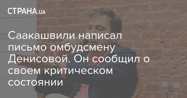Уполномоченная Верховной рады по правам человека Людмила Денисова получила письмо от экс-президента Грузии Михаила Саакашвили, в котором он сообщает, о критическом состоянии своего здоровья и недавних неудовлетворительных результатах анализов.