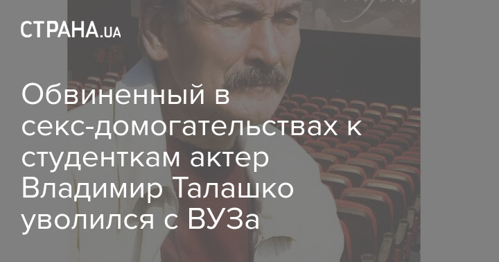 Украинский актер Владимир Талашко больше не будет преподавать в университете имени Карпенко-Карого. Студентки университета обвинили артиста в сексуальных домогательствах, и Талашко написал заявление об увольнении по собственному желанию.