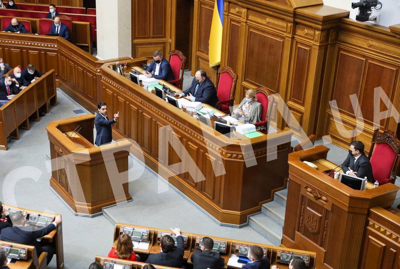Депутат показал президенту средний палец, выступая на трибуне в парламенте. В зале на тот момент находился Зеленский, который приехал на голосование за новых министров.