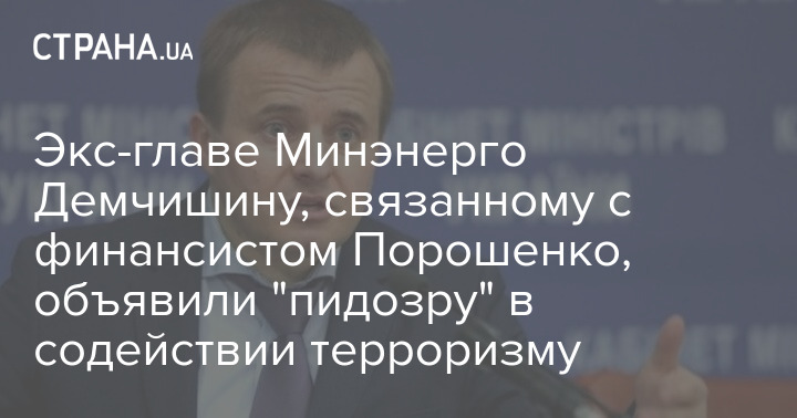 Правоохранители сообщили о подозрении бывшему Министру энергетики и угольной промышленности Украины, которого обвиняют в "совершении по предварительному сговору группой лиц содействия деятельности террористических организаций (ч. 2 ст. 28 ч. 1 ст. 258-3 УК Украины)".