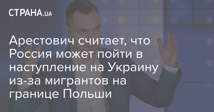 Внештатный советник главы Офиса президента и спикер украинской делегации в ТКГ Алексей Арестович заявил, что Россия в связи с напряженностью на границе Белоруссии и Евросоюза может "пойти в наступление" на Украину.